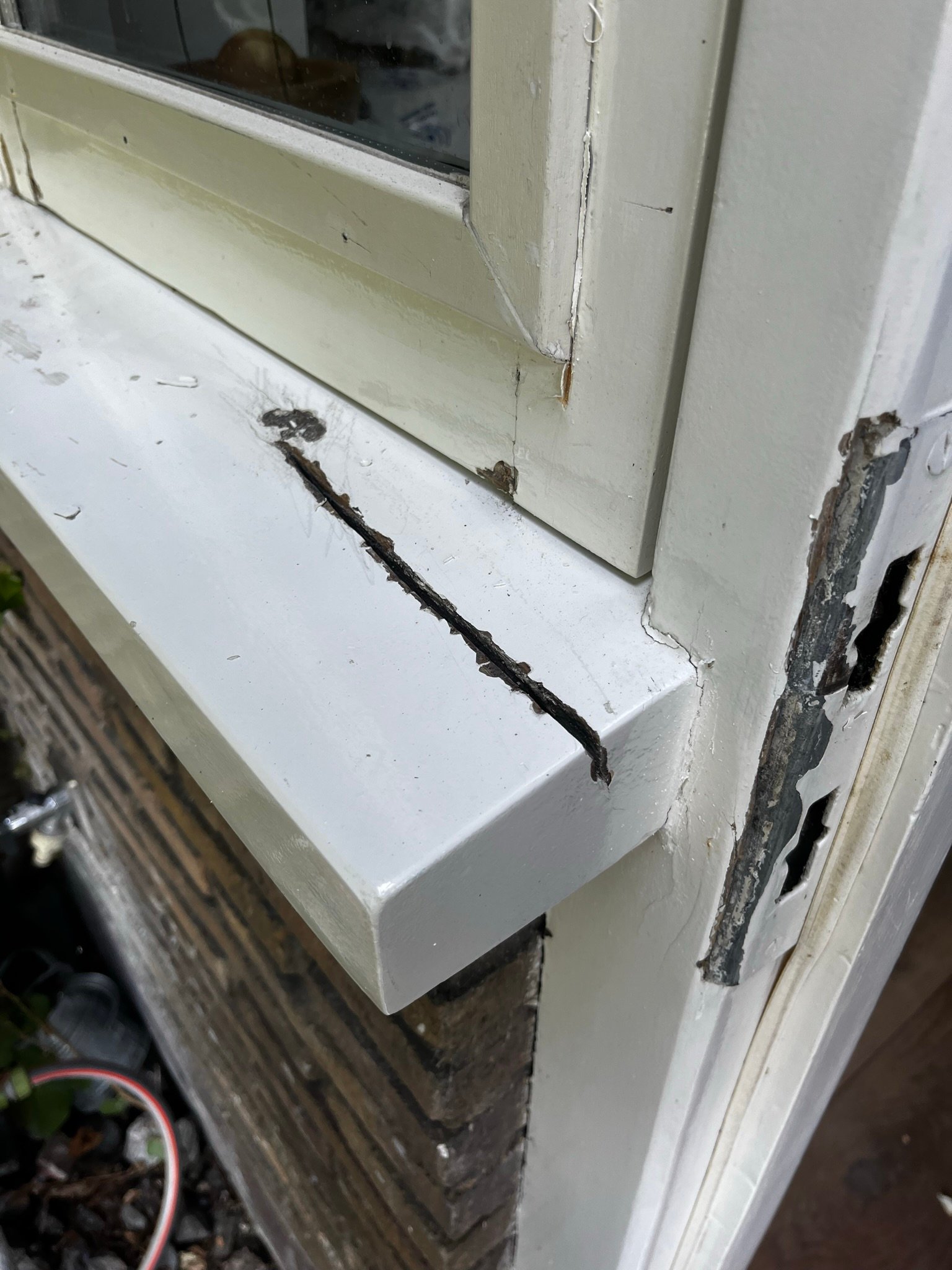 • Vochtschade aan kozijnen, bijvoorbeeld door condens of achterstallig onderhoud